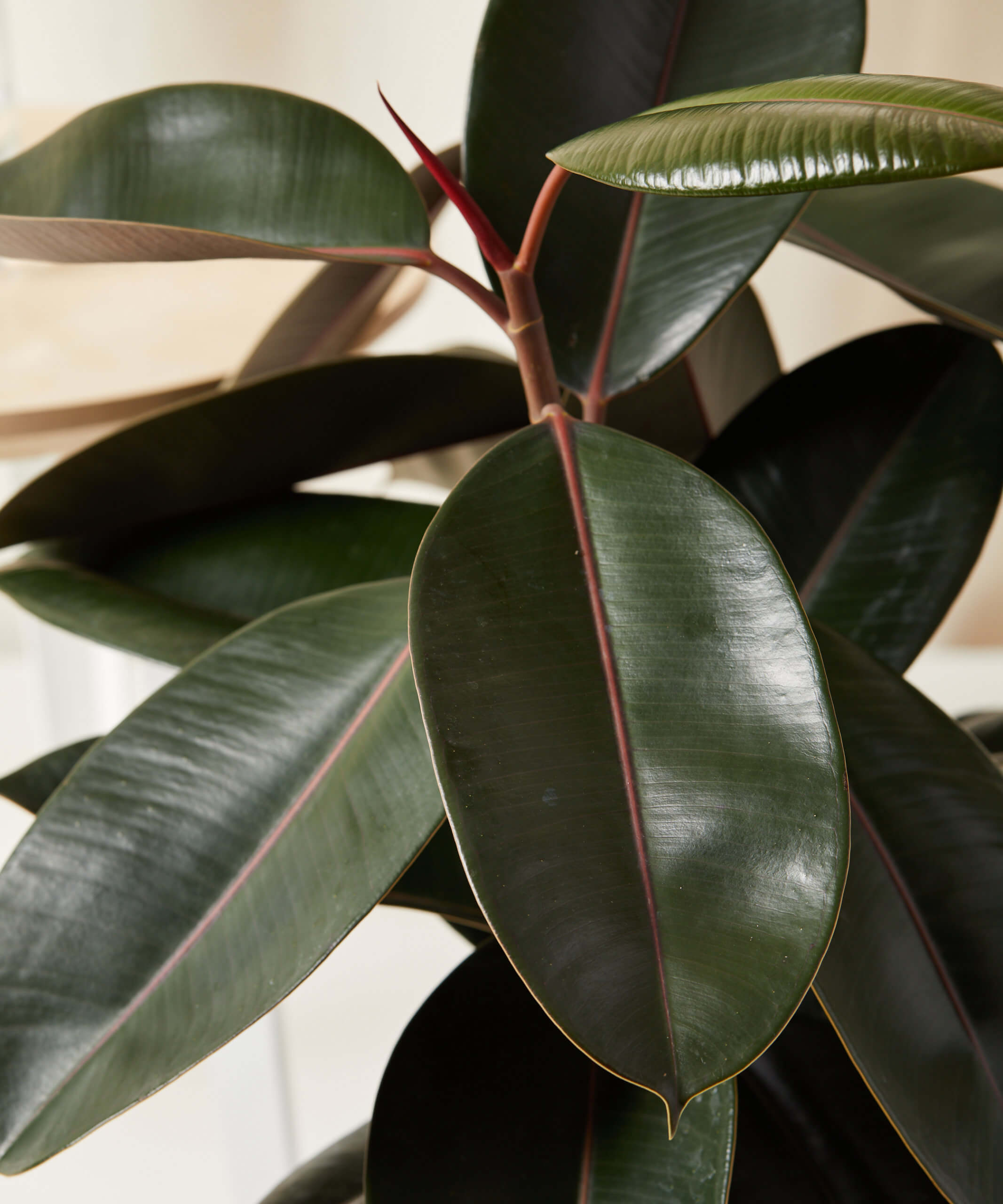 Robust and dramatic, the Burgundy Rubber Tree sports large, glossy leaves on durable, upright stems. This striking plant is ready to make a statement in your home with its dark, moody color palette ranging from deep forest green to rich burgundy red. This low-maintenance plant will be happiest in a spot with bright indirect light.