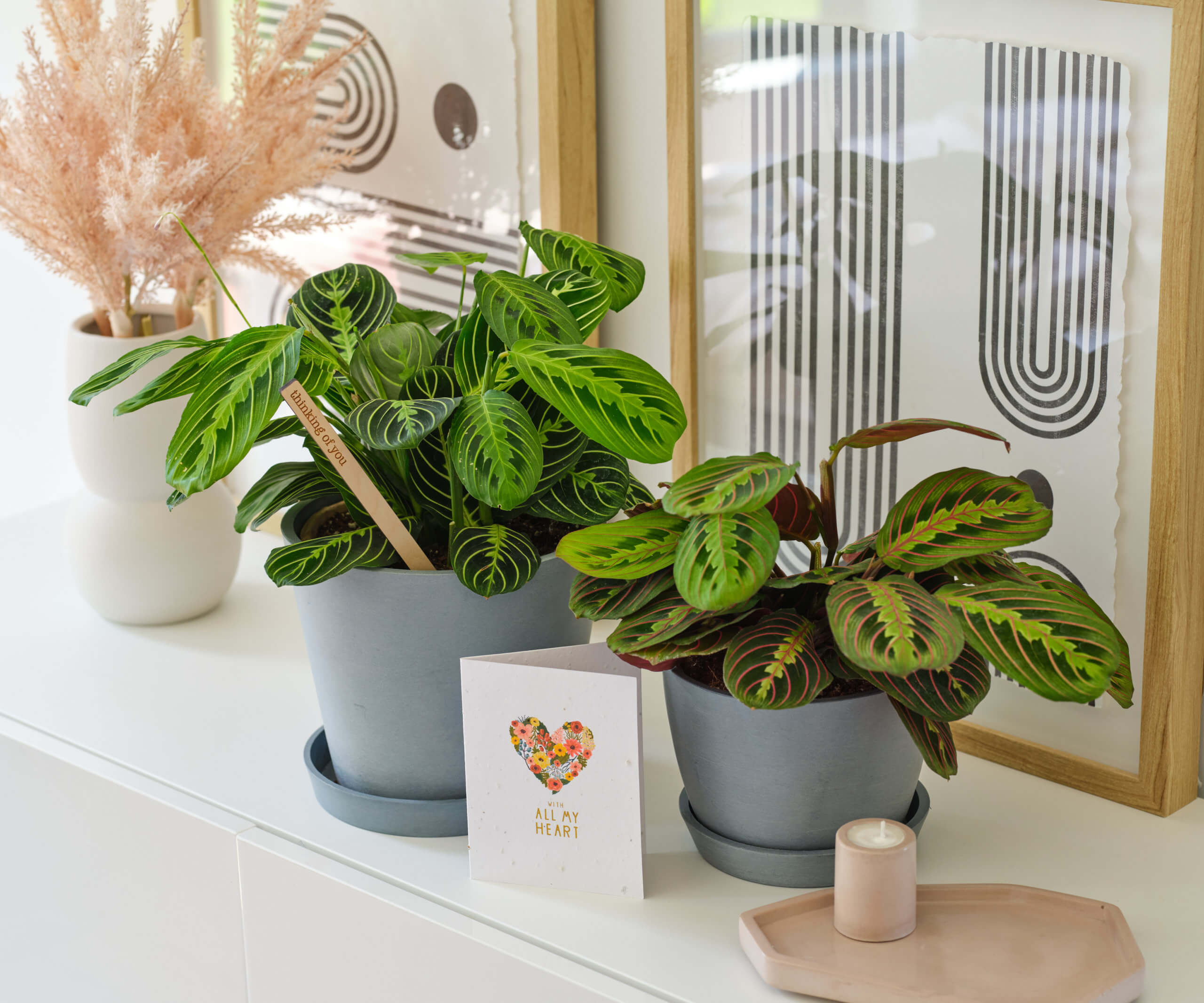 Send a thoughtful, long-lasting message for those experiencing difficult times with the Sympathy Bundle. The Red Prayer Plant and Neon Prayer Plant are a soft reminder that no matter the distance or situation, you’re thinking of them. This pair is easy as far as care goes, so your loved ones can focus their time on self-care. Prayer Plants can be placed in low to indirect light making them ideal for almost any space.